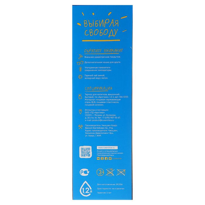 Термос Арктика 106-1200 объемом 1,2 литра, имеет классический дизайн. Арктика 106-1200 имеет узкое горлышко, поэтому обладает хорошей эргономикой и замечательно лежит в руке. Термосы Арктика имеют уникальную особенность, они покрываются специальной «молотковой» эмалью, которую очень сложно повредить.