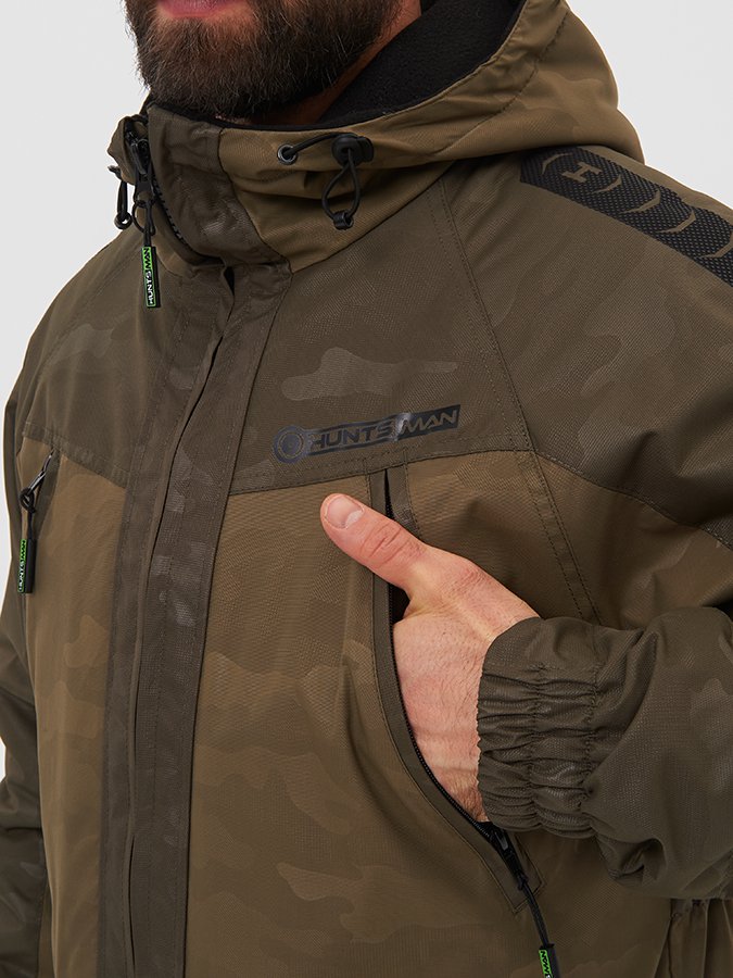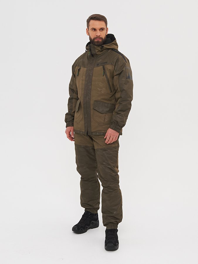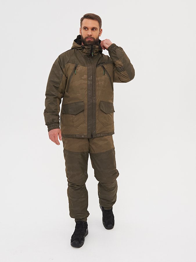 Костюм выполнен из современной мембранной ткани, которая обеспечит сухость и комфорт даже во время интенсивных нагрузок в суровых условиях. Ткань верха – хорошо зарекомендовавшая себя Breathable Camo с показателями 6000/6000. |
